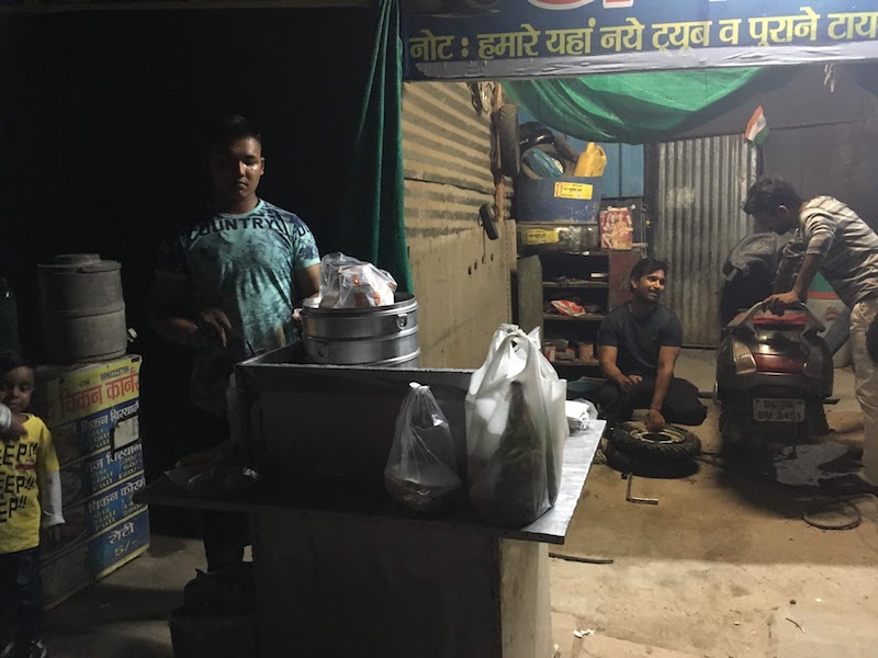 バイク屋の前に店出すんかいって思ったけどね。インドは本当になんでもあり笑